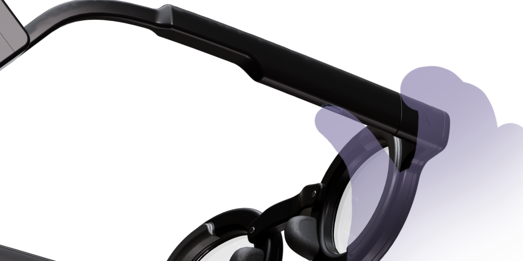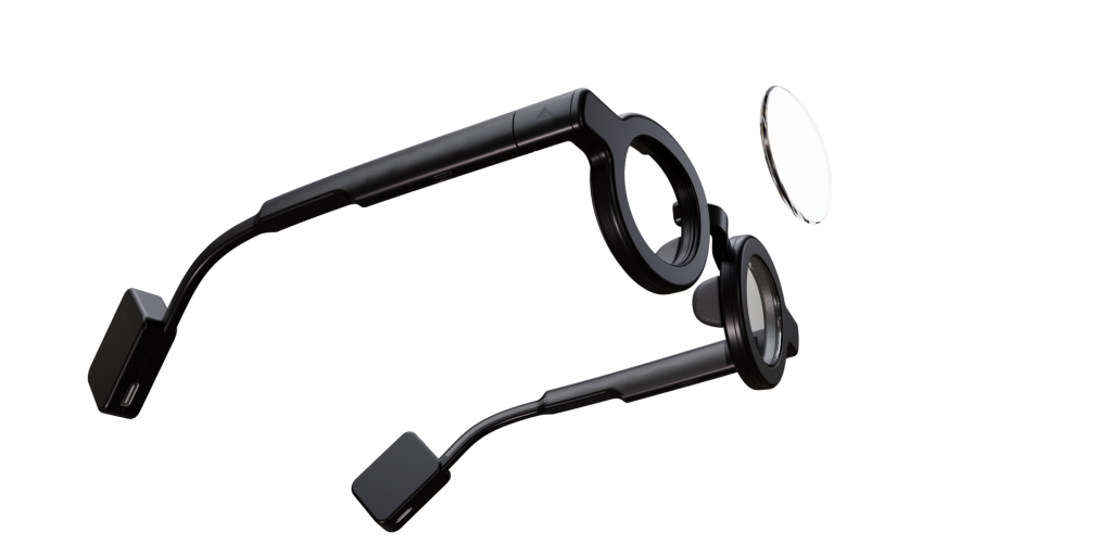 รูปทรงของแว่นถูกสร้างให้ “เท่ เรียบง่าย และกลมกลืนกับชีวิตประจำวัน” รองรับการเปลี่ยนเลนส์สายตาหรือเลนส์กันแดดได้เหมือนแว่นทั่วไป ใช้วัสดุเรซินน้ำหนักเบา พร้อมแบตเตอรี่ลิเธียมไอออนชาร์จผ่านพอร์ต USB-C