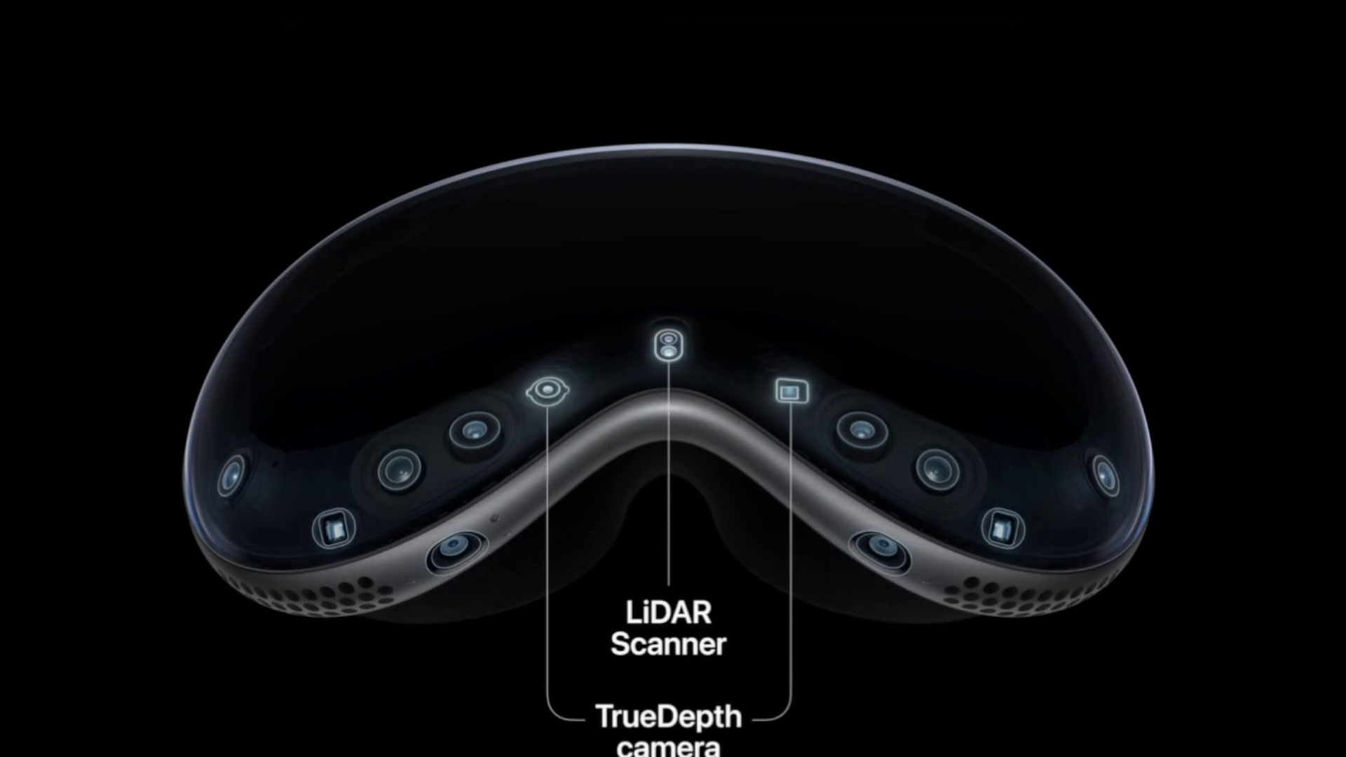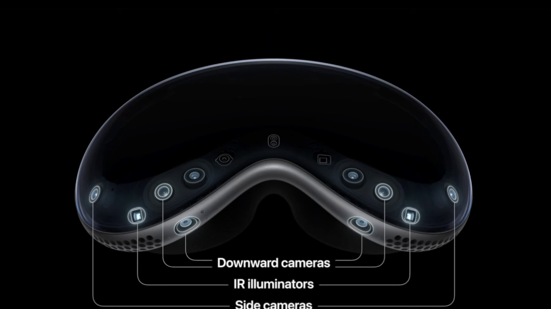 – ด้านหน้าแว่นมีกล้องเยอะมาก มากถึง 12 ตัว Main cameras x 2 , Downward cameras x 4 , Side cameras x 2 , TrueDepth camera x 2 และมี IR illuminators x 2 รวมถึง LiDar Scanner