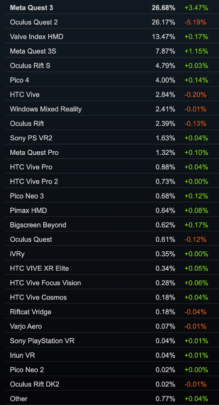 ในขณะที่ Quest 3S อยู่ราว ๆ 1–2% เท่านั้น